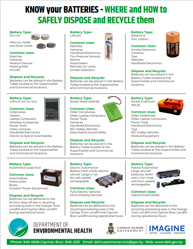 5 Gallon containers or less - In Grand Cayman, please use the 24 hour Drop-off area at the entrance of the GT Landfill. In Cayman Brac & Little Cayman, please drop-off at the designated area in the landfill.
